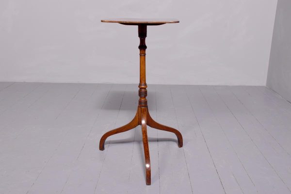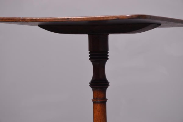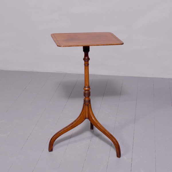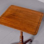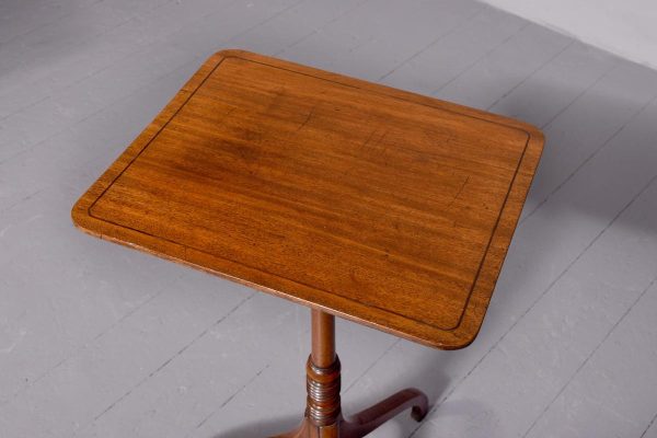 Circa 1800. Quality ebony inlaid attractive George III mahogany occasional table. The rectangular top in lovely patinated inlaid Spanish mahogany supported on a ring turned stem with unusual ring decorations over three splayed feet. Totally original and lovely colour in patina.