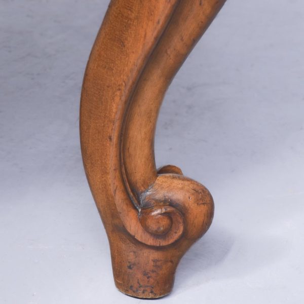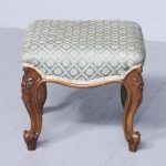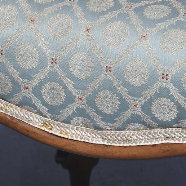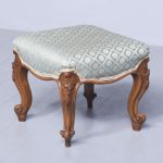 Circa 1870. Quality mid-Victorian walnut cabriole stool. The deep upholstered top in a classical style upholstery in excellent condition over a beaded seat rail and supported on cabriole legs with foliate carved knees and scroll toes. In perfect condition.