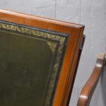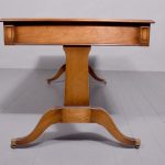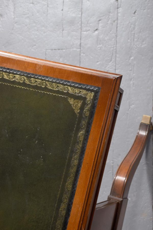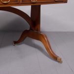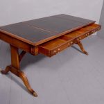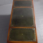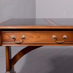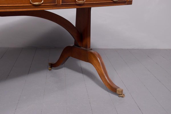 Circa 2000. Quality Regency-Style Mahogany Partners Writing Table. The writing surface with three panels of green leather with gilt tooling and a moulded edge over three frieze drawers with brass swan-neck handles and matching dummy drawers on the opposite side. Supported on trestles over twin cabriole legs with brass caps and casters.