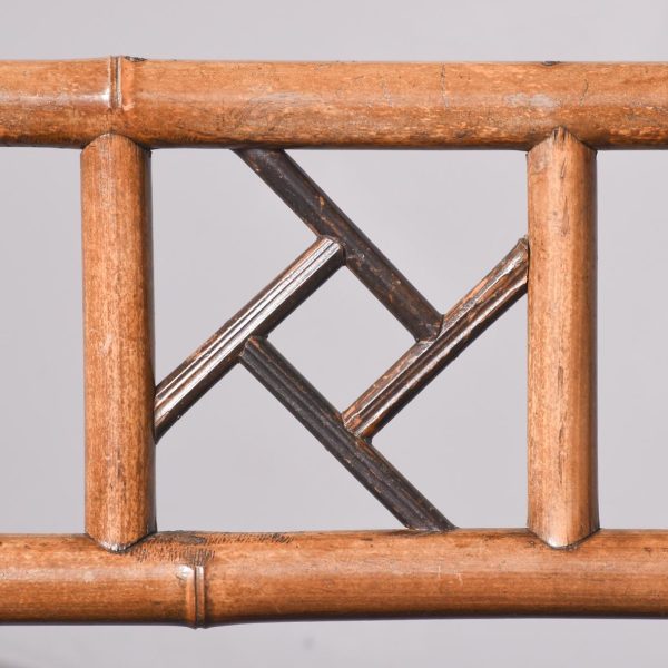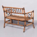 Circa 1900. Rare late Victorian brass capped and bound bamboo and rattan settee. The back with arts and craft decorated brass caps and brass-bound corners with vertical and horizonal bamboo and a lattice panel. The sides with similar design, with a rattan seat. Supported on out-swept legs with faux bamboo stretchers.