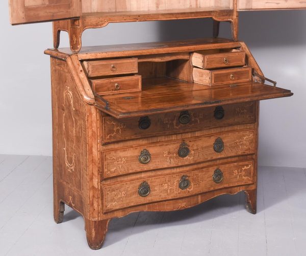 Rare Marquetry- Inlaid 18th Century Italian Walnut Bureau Cabinet