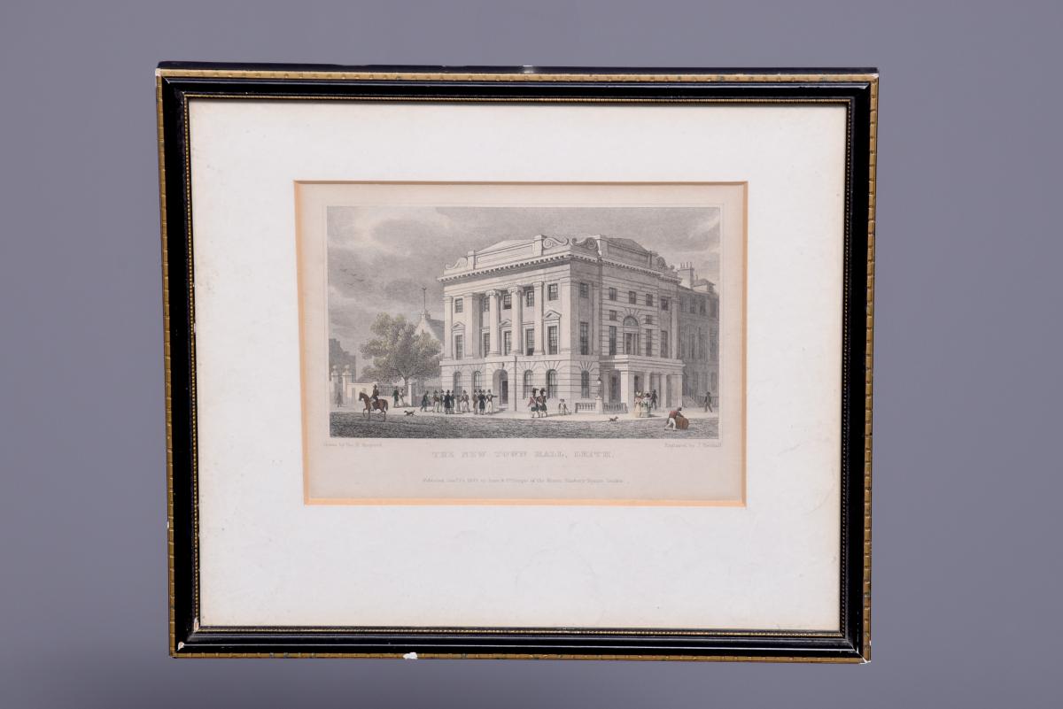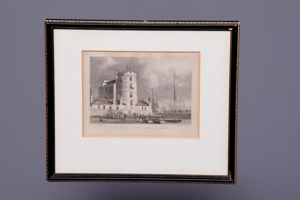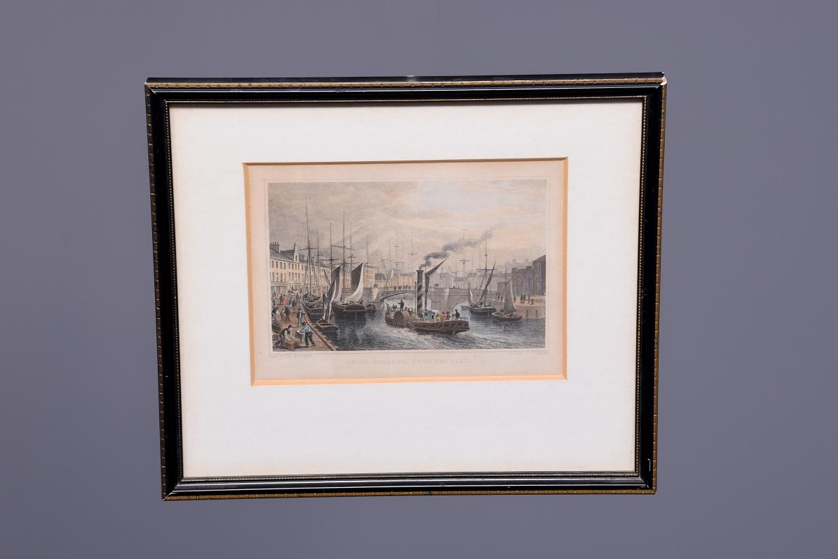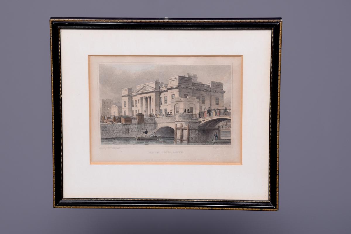 Circa 1850. Rare set of 6 hand-tinted engravings of Leith and its Harbour. The engravings depict the new Town Hall, Customs House, Exchange Building, Signal House, Leith Pier and Harbour. The original paintings by Thomas Shepherd later Engraved byJ Henshall, T Higham, & R Wallis. All mounted in ebonised and gilded frames. All in excellent condition.
