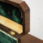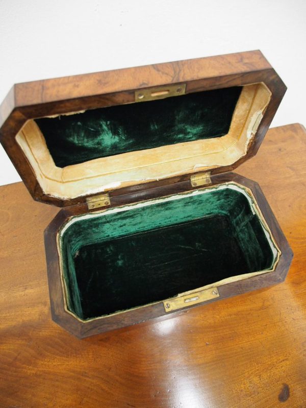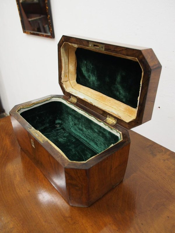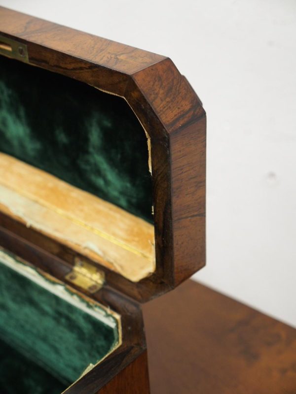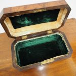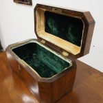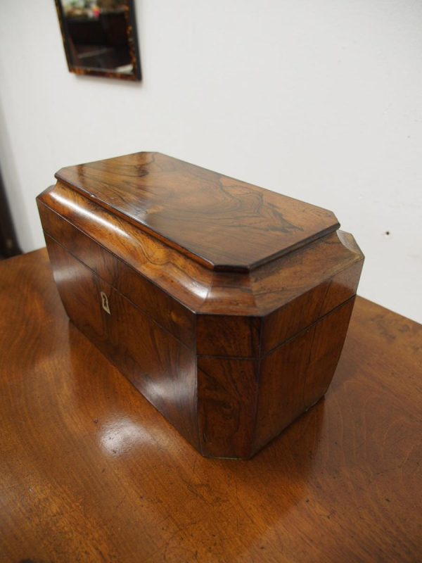 Circa 1840, rosewood sarcophagus shaped box. With a moulded rim to the top, canted corners and mother of pearl escutcheon. The interior has possibly previously been used as a jewellery box.