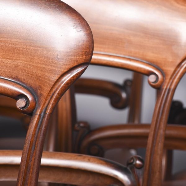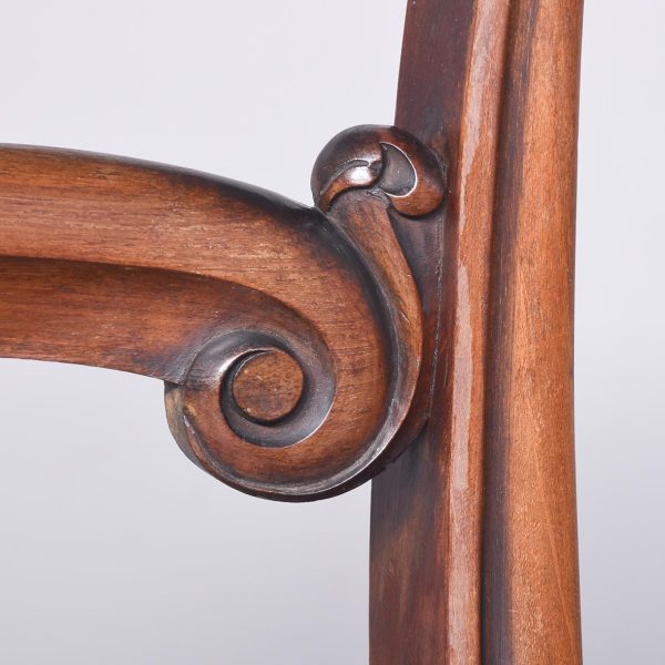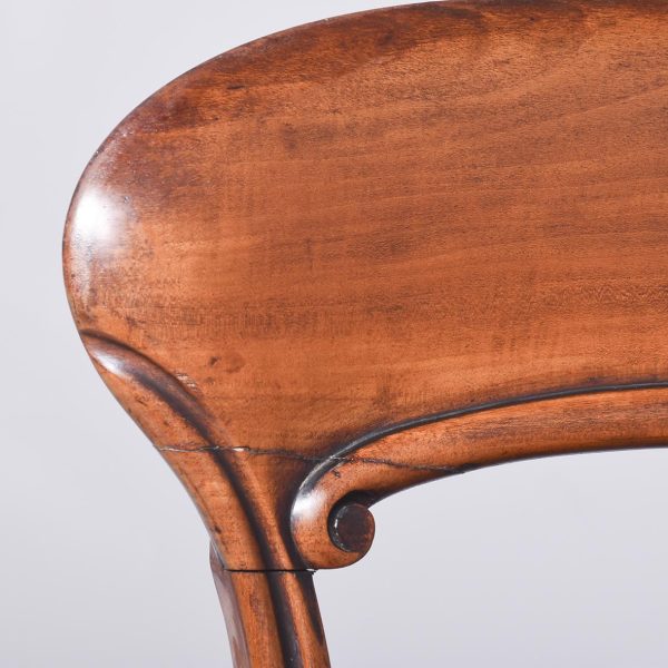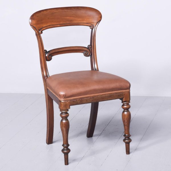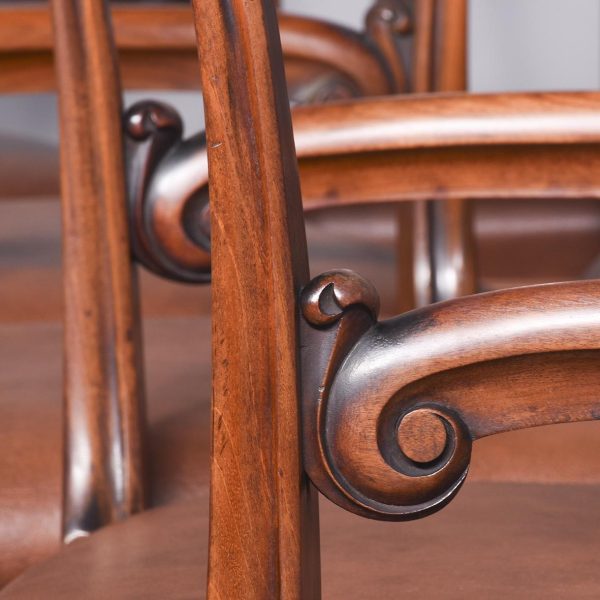 Circa 1860. A rare set of 20 Scottish mahogany dining chairs. The large curved cresting rail in rich mahogany, with elegant scrolling beneath, the lower back, with C scrolls on the bottom and foliate carving on the sides. The uprights with reeding which continues and tapers at the top rail, the large stuff over seats, with simple seat rails which are chamfered on the top and the bottom, back legs are square and slightly out-swept, and front legs are turned ring turned and finish on an elegant toe. The underside of the chair shows an ash frame (sign of quality).
