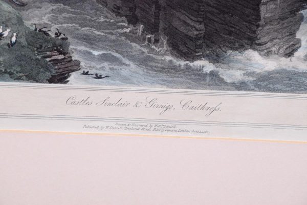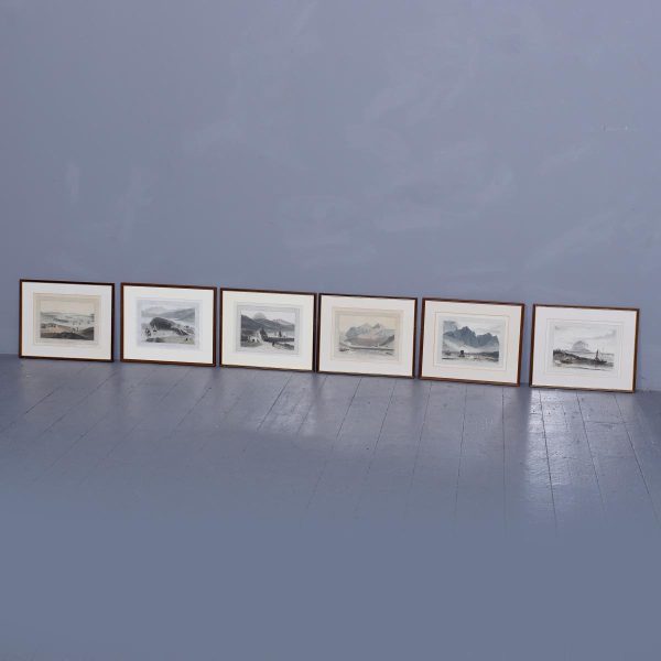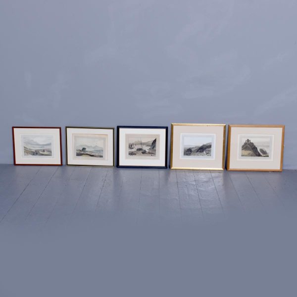 A set of 27 early 19th century hand coloured prints in various dates from 1818-1822. Depicting different parts of Scotland, the set drawn and engraved by ‘William Darriell’, published by ‘Platermonster and Danielle Fitzroy, London’. All of the prints mounted in glazed frames which vary from simple ebonized ones, stained and gilded and all in excellent condition.