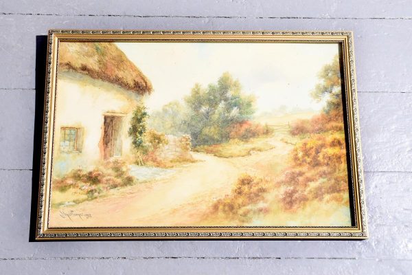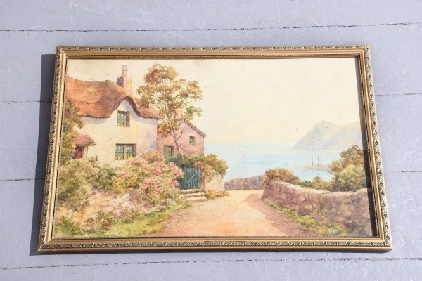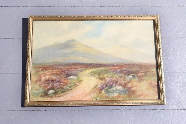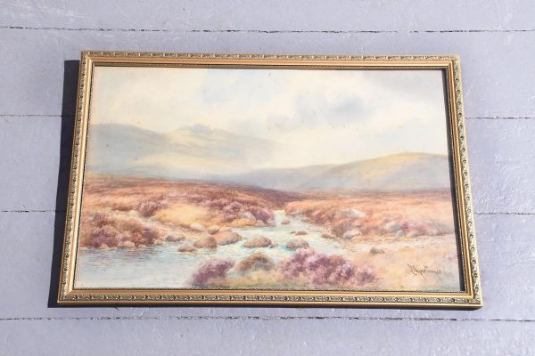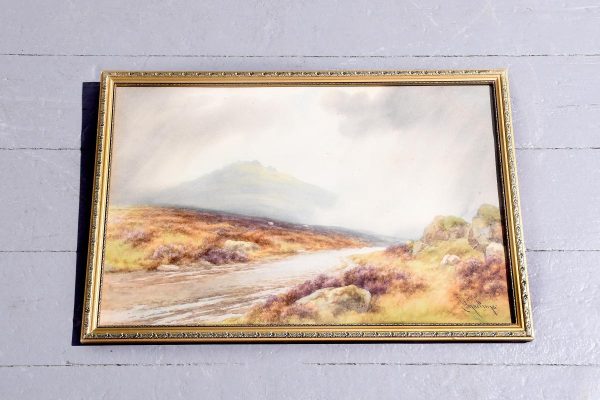 Circa 1920’s. Set of 6 watercolours dated 1922 by Lewis Mortimer, depicting rural scenes in the UK, including the river Taw at Belstone, Oakhampton, river Taw near Princeton, a Devonshire Lane, Castle Rock Lynton, Shelly’s Cottage at Lynmouth, and West Mill, Oakhampton, each of the water colours are in excellent condition. All in simple glazed and gilded frames.