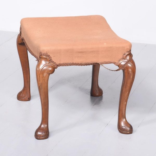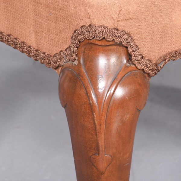 Circa 1920. Stylish Whytock and Reid mahogany stool with saddle shaped upholstered seat supported on cabriole legs with art deco carvings to the tops and Lorimer style pad feet. With usual Whytock and Reid quality craftsmanship and materials. To learn more about Whytock & Reid, click here: