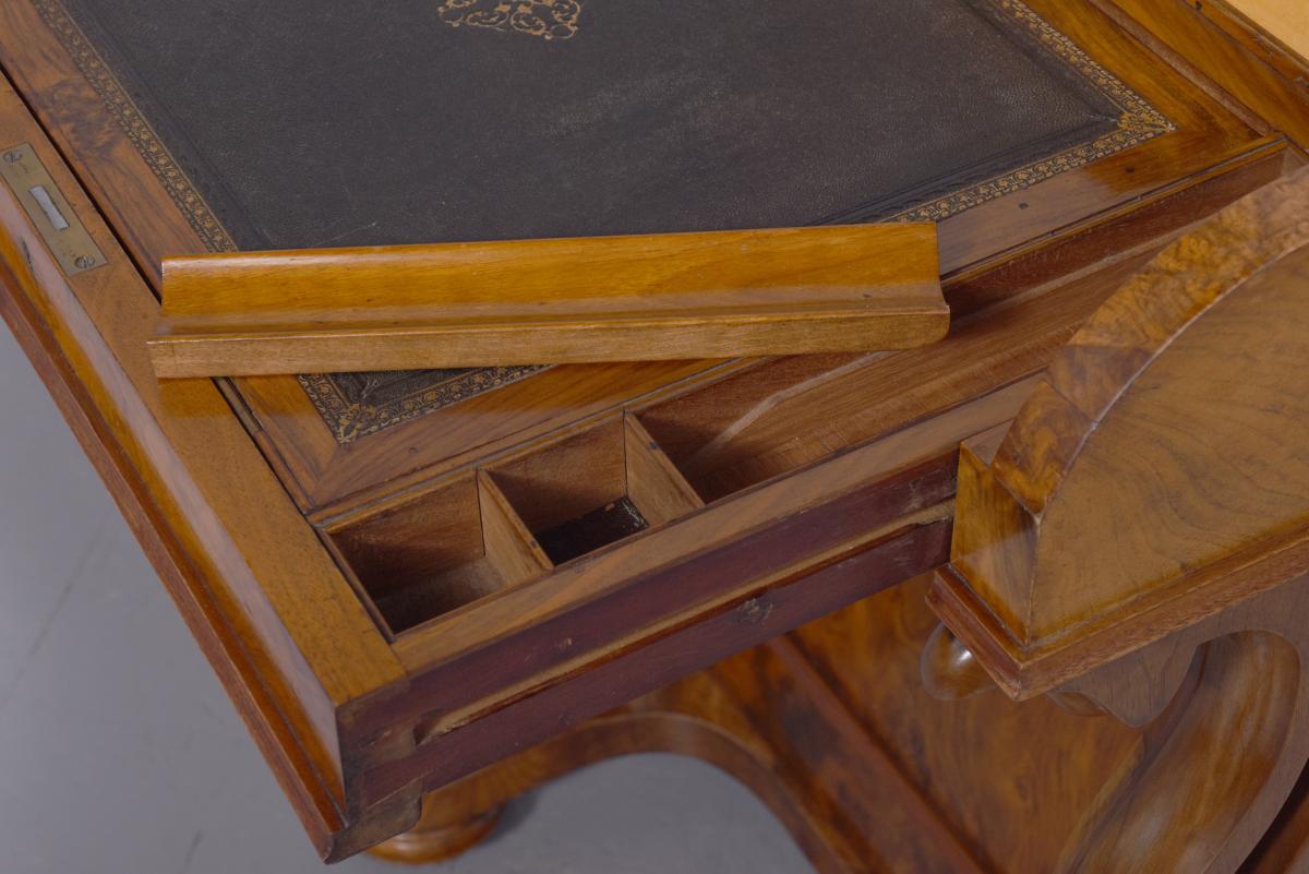 Superb burr walnut Victorian Harlequin Piano Top Davenport