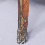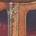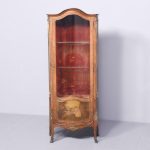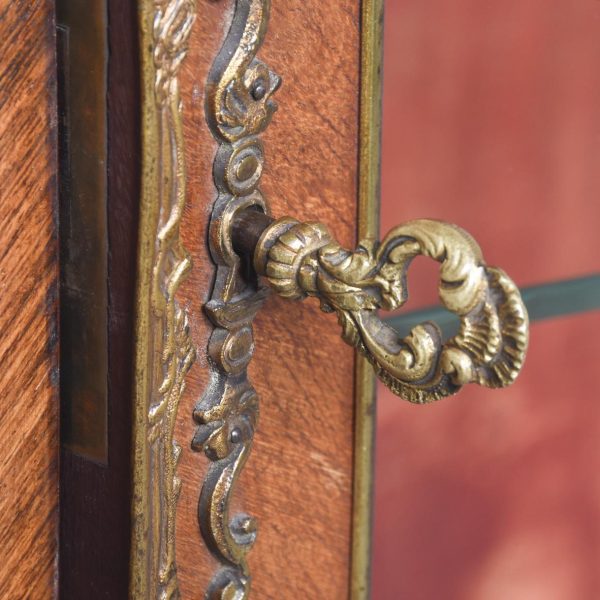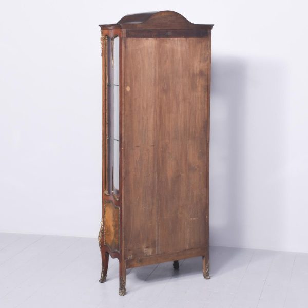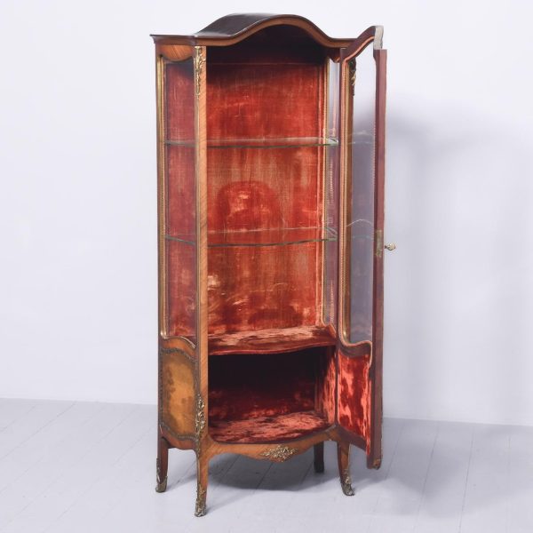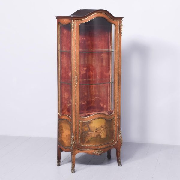 Superior quality kingwood Vernis Martin display cabinet. The arched top above a bow-front glazed door with a crossbanded frame and extensive foliate ormolu mounts above a quality Vernis Martin panel. The corners with ormolu acanthus mounts flanked by shaped, glazed sides. The velvet-lined interior in perfect condition with glass shelves. Supported on cabriole legs with brass mounts and sabots. In excellent condition.