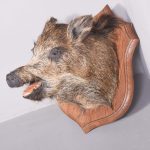 Taxidermy Mounted Boar’s Head on Oak Shield