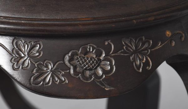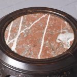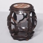 Unusual Qing period, Chinese hardwood pierced-barrel marble top plantstand