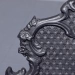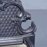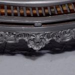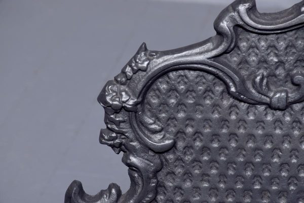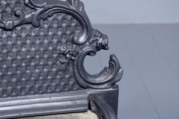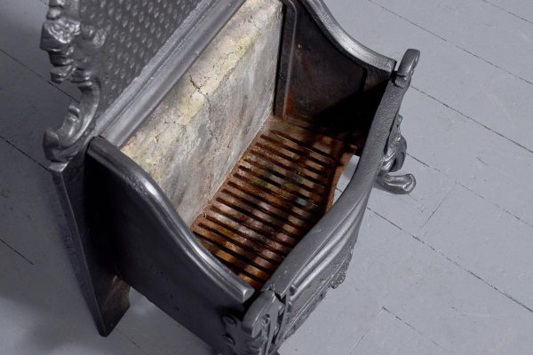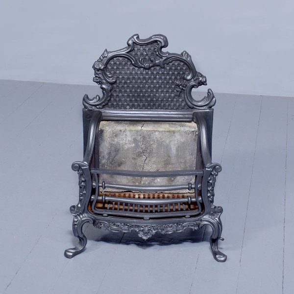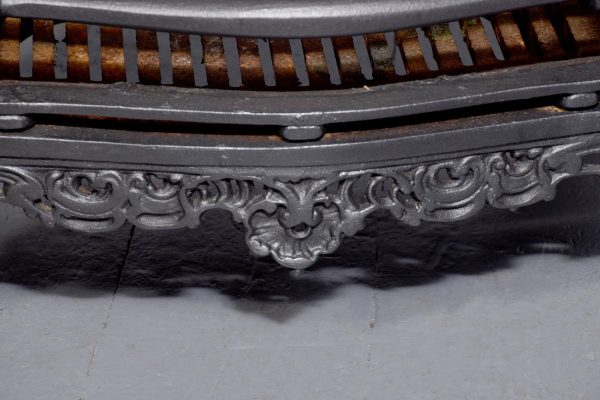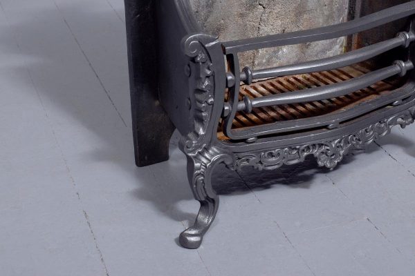 Circa 1818. Victorian cast iron Rococo-style fire basket. The shaped back with Rococo C scrolls and punched decoration. The curved sides of the fire basket and a convex front with ring turned bars flanked by Rococo decoration. The base with an open rococo skirt and all supported on cabriole feet. In excellent condition.