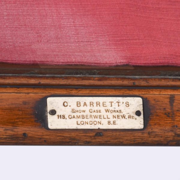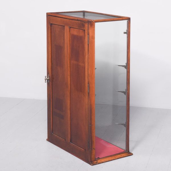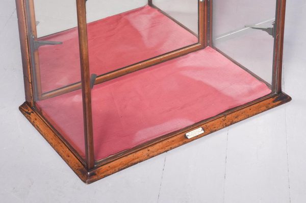 Circa 1870. Mid Victorian mahogany, glazed and mirror back floor standing showcase. The glazed cabinet with full mirror back which is also the hinged and paneled door which opens to reveal three adjustable shelves with glazing on the sides, front and top. On the base at the front is a maker’s label ‘C. Birds? Showcase maker, 118 Camberwell, New Road, London SE’. The showcase is in excellent condition, with great style.