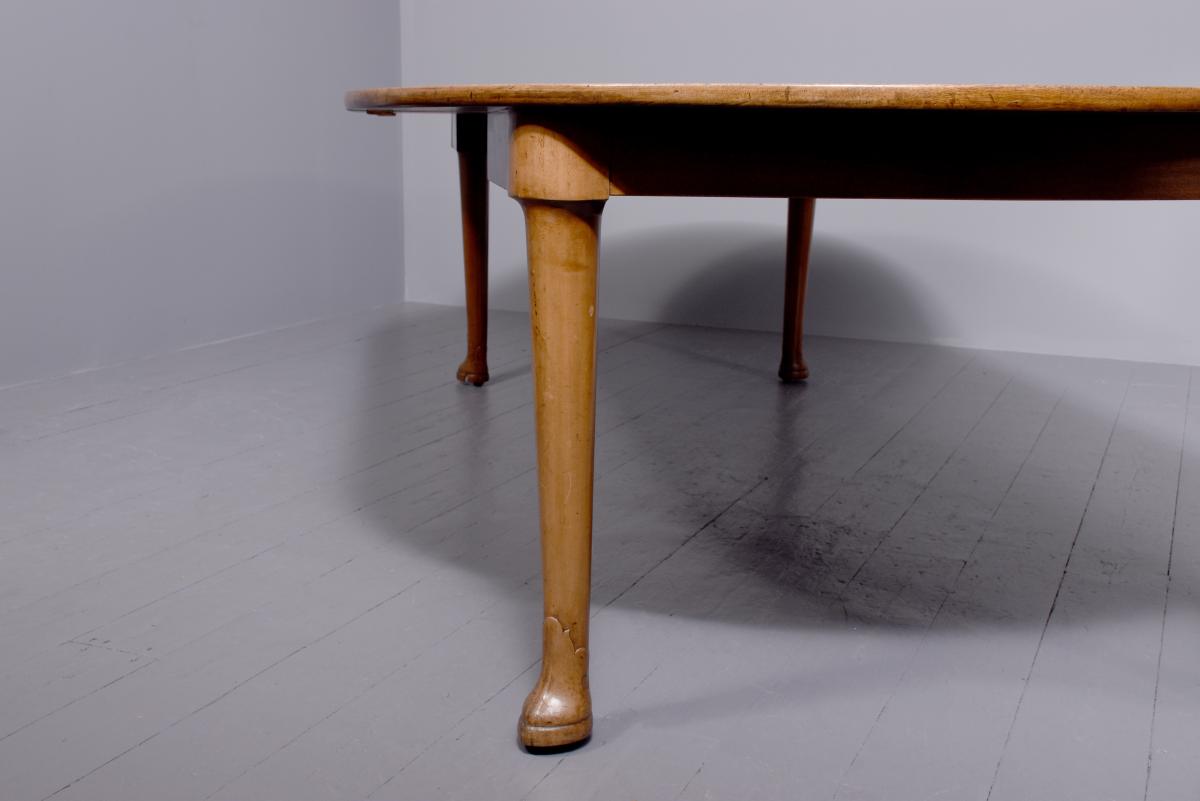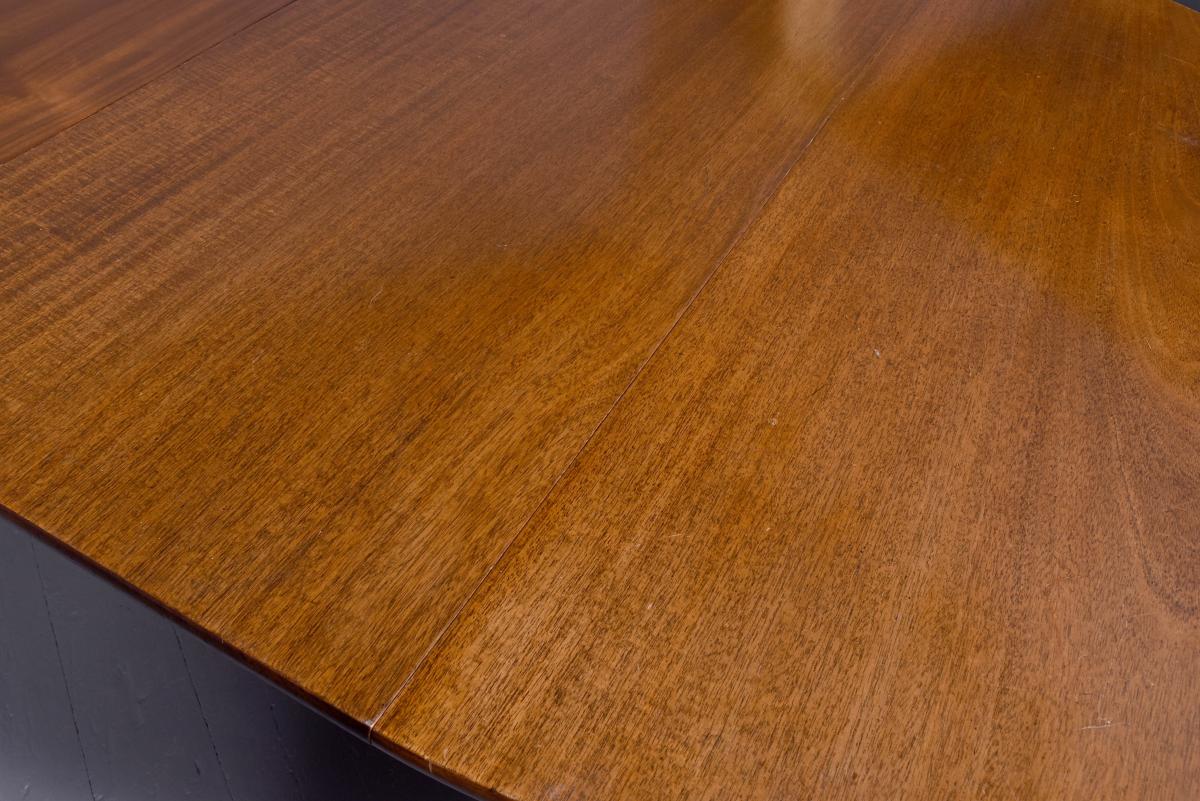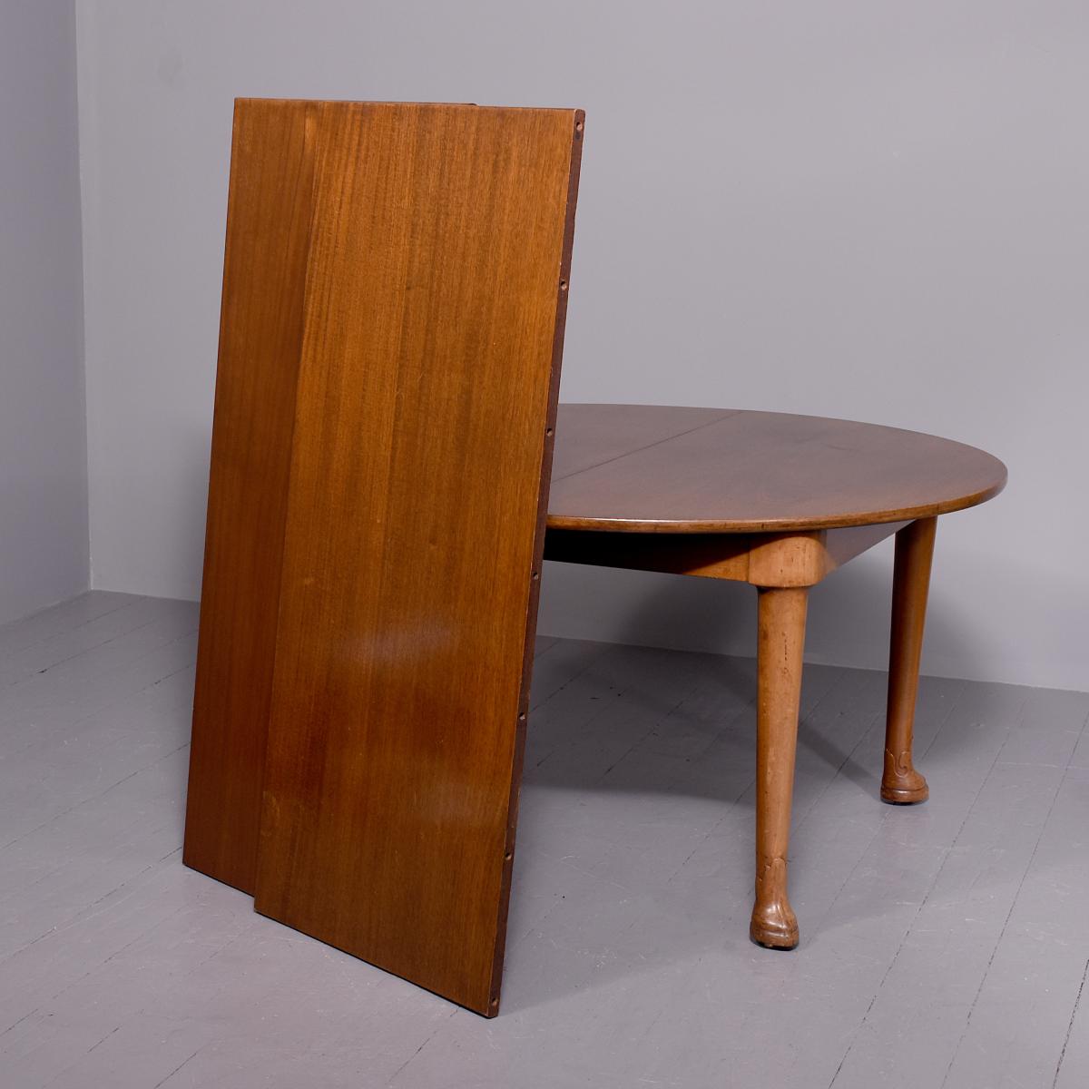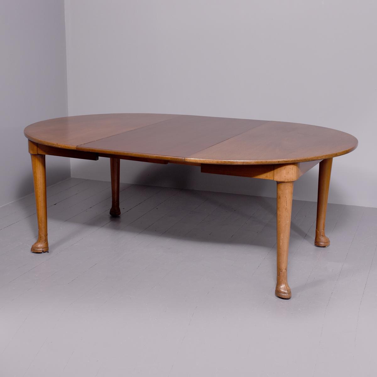 Circa 1920s. A quality mahogany dining table by ‘Whytock & Reid of Edinburgh’, the circular table with two extra original leaves which are held in place by brass clips and keepers, the table has a simple frieze which is away from the D ends, so no interruption from the frieze, resting on four quality tapering legs finishing on a classic carved ‘Whytock & Reid’ foot, the table can seat 10 people comfortably.