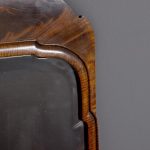 Circa 1900 a quality mahogany framed wall mirror by’ Whytock & Reid of Edinburgh’, with many of ‘Sir Robert Lorimer’ features, the curved and shaped top in book-matched mahogany, the original bevelled mirror in a stylish frame which following the form of the glass, the back of the frame is panelled, always a sign of quality.