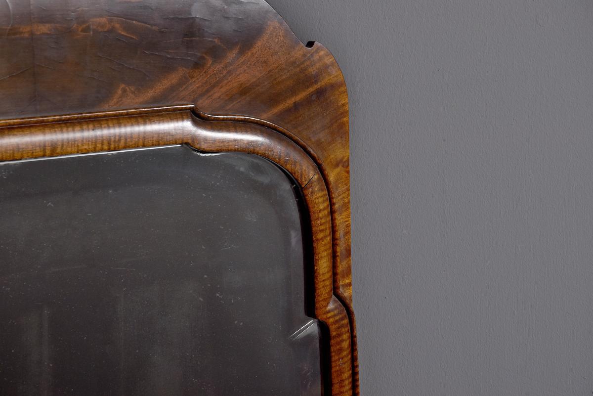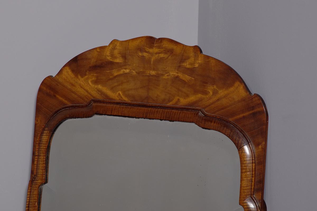 Circa 1900 a quality mahogany framed wall mirror by’ Whytock & Reid of Edinburgh’, with many of ‘Sir Robert Lorimer’ features, the curved and shaped top in book-matched mahogany, the original bevelled mirror in a stylish frame which following the form of the glass, the back of the frame is panelled, always a sign of quality.